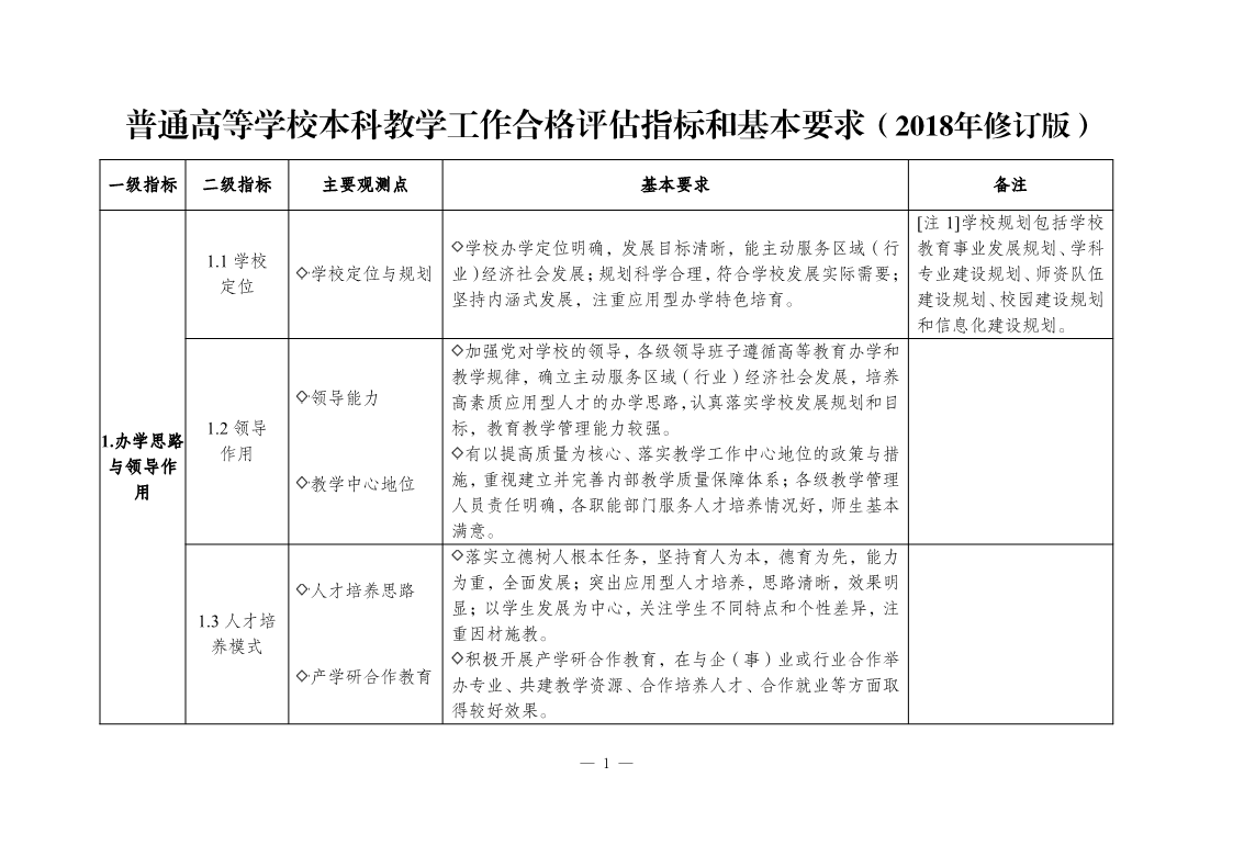 普通高等学校本科教学工作合格评估指标和基本要求(2018年修订版)